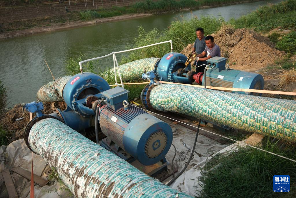 6月18日,在山东省巨野县麒麟镇的一处抗旱应急取水点,工作人员在检查水泵。