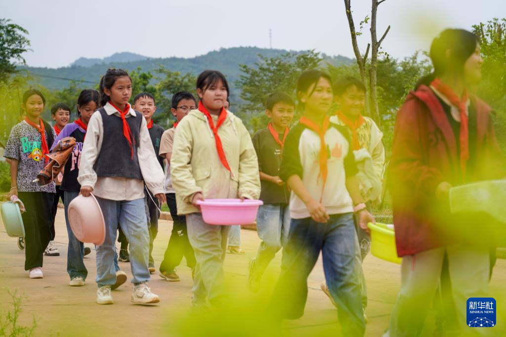 6月17日,丘北县锦屏镇密纳小学校的学生带着洗浴用品前往“希望澡堂”。