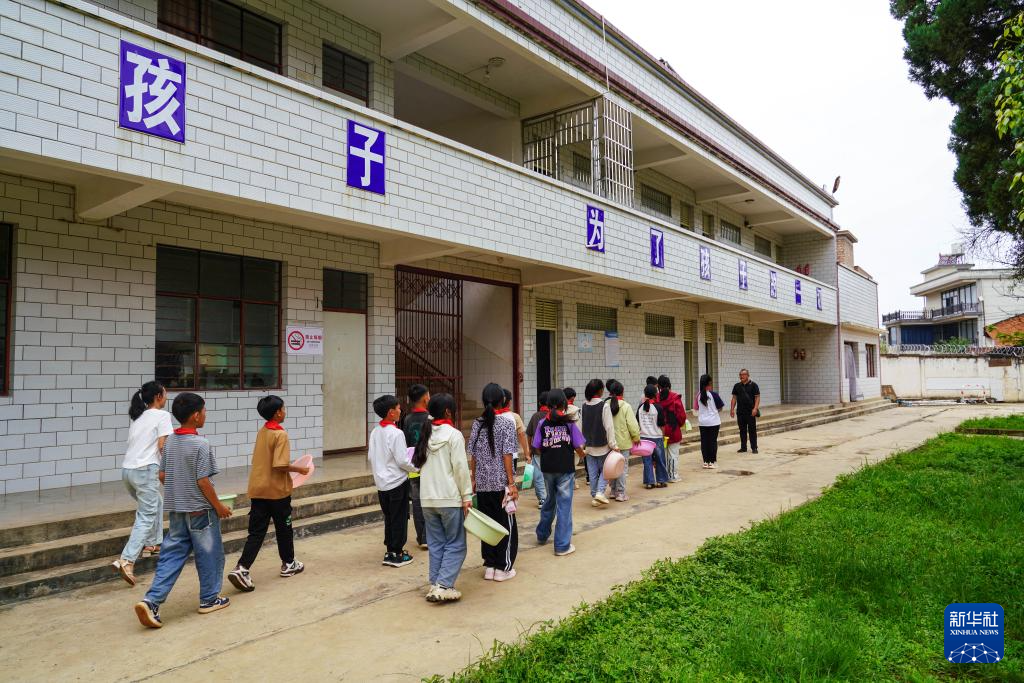 6月17日,丘北县锦屏镇密纳小学校的学生排队进入“希望澡堂”。