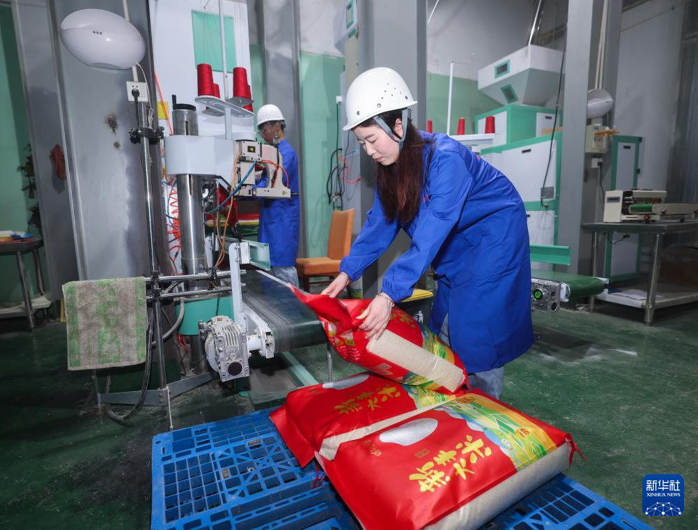 6月19日,蔡月琴在大米加工车间打包刚刚加工好的稻米。蔡月琴是嘉兴市南湖区新丰丰硕家庭农场农场主,“95后”新农人。她和丈夫洑文刚运用新模式在承包的土地上种植水稻和小麦,既实现化肥农药“双减”,又确保稻米品质安全。