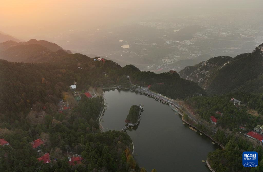 这是江西庐山如琴湖风光(2023年11月17日摄,无人机照片)。
