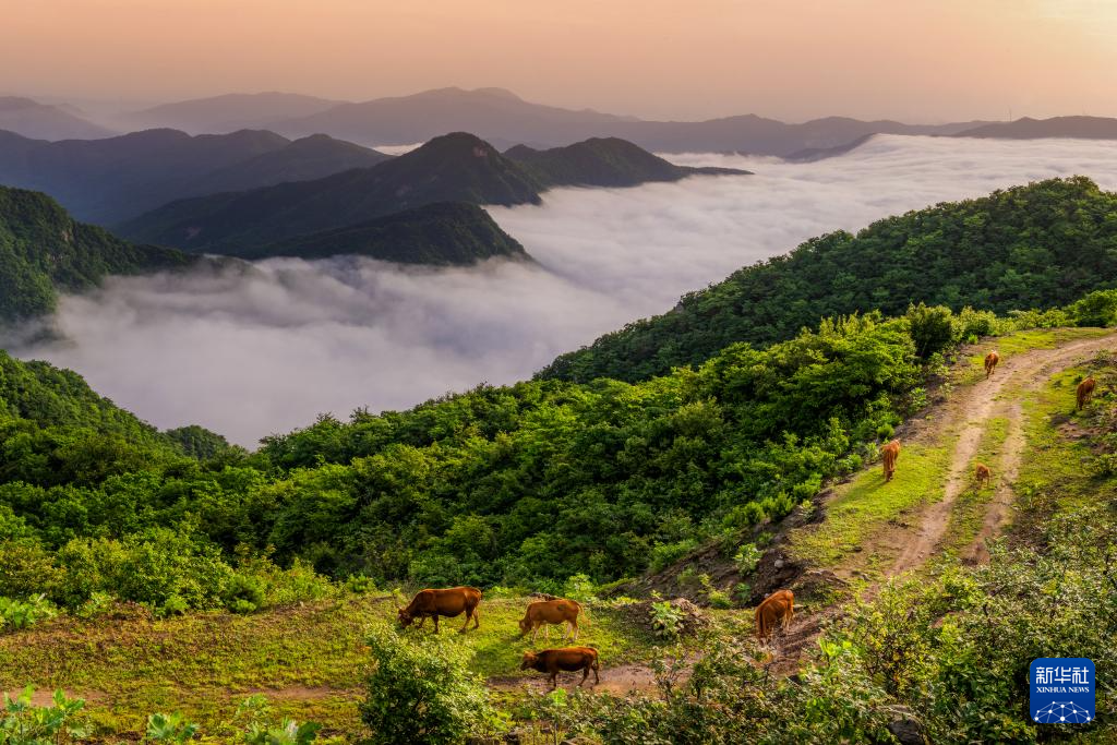 这是河南省新县黄毛尖山,大别山主峰之一(2023年5月27日摄,无人机照片)。