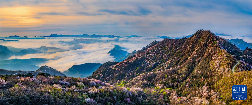 这是河南省新县黄毛尖山,大别山主峰之一(2023年4月8日摄,无人机照片)。