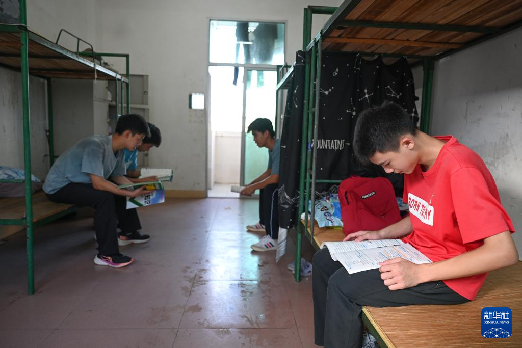 6月20日,武平县乡镇中考考生在武平二中宿舍里看书复习。