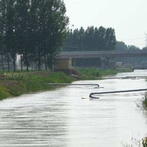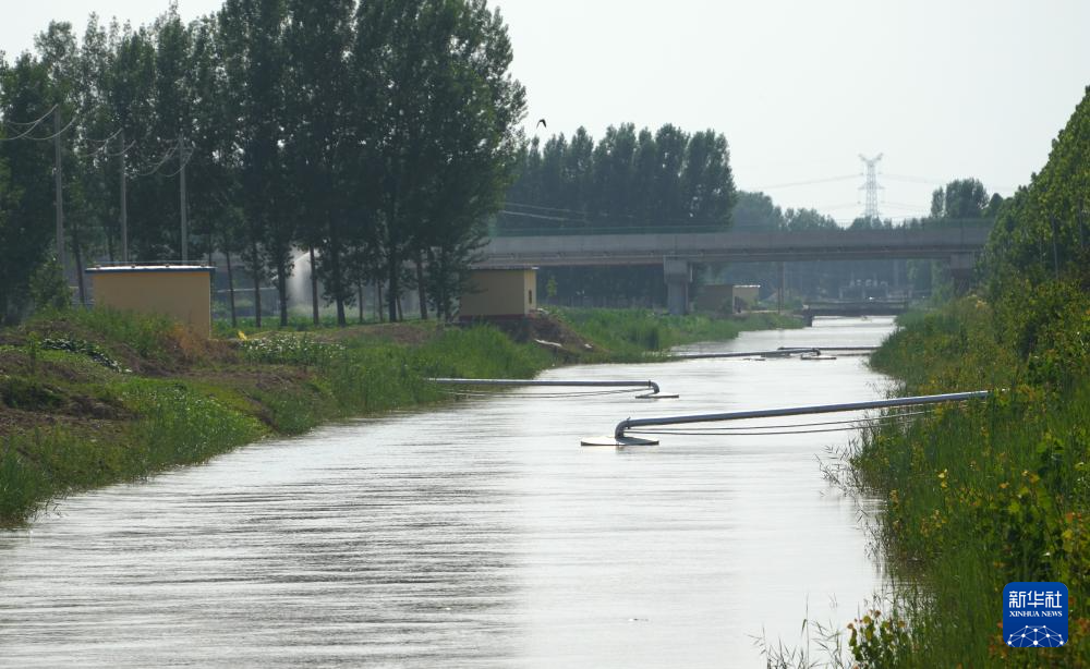 6月19日,在山东省高青县青城镇,引黄渠道两岸的泵站在抽取黄河水。
