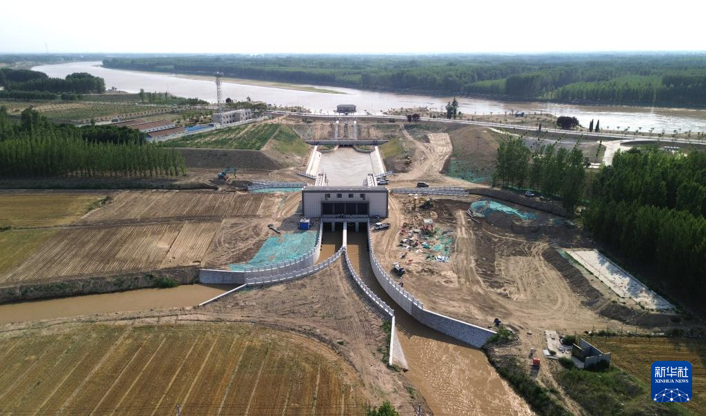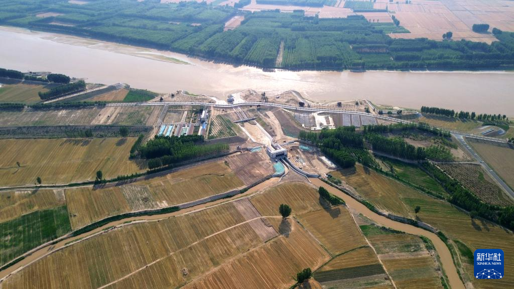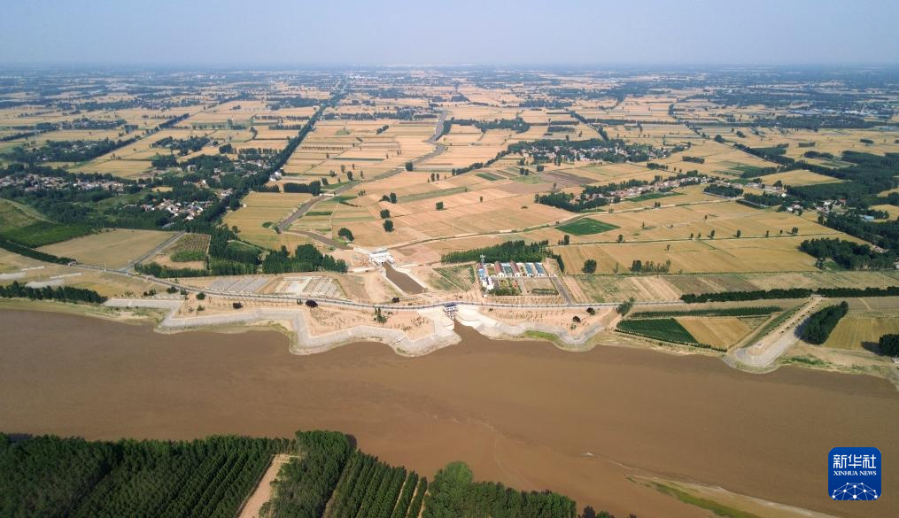 6月19日,位于黄河高青段的马扎子引黄闸在开闸引水(无人机照片)。