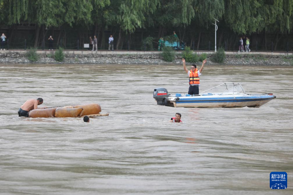 6月20日,救援人员在黄河兰州段盐场堡码头水域开展应急搜救综合演练。