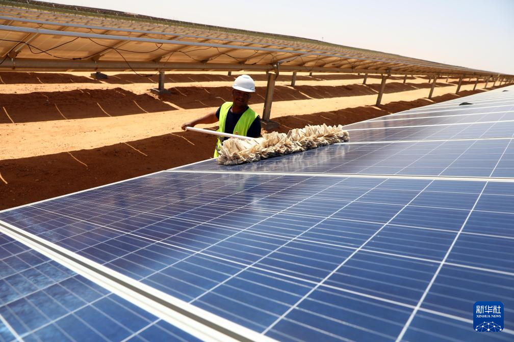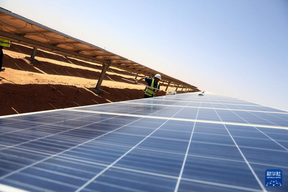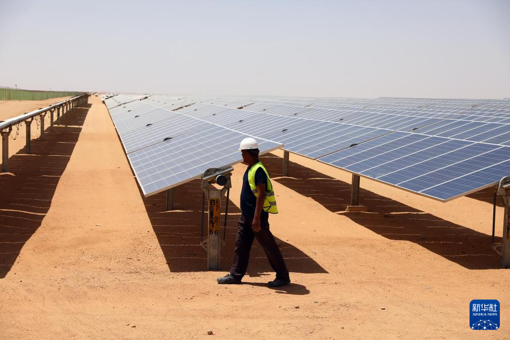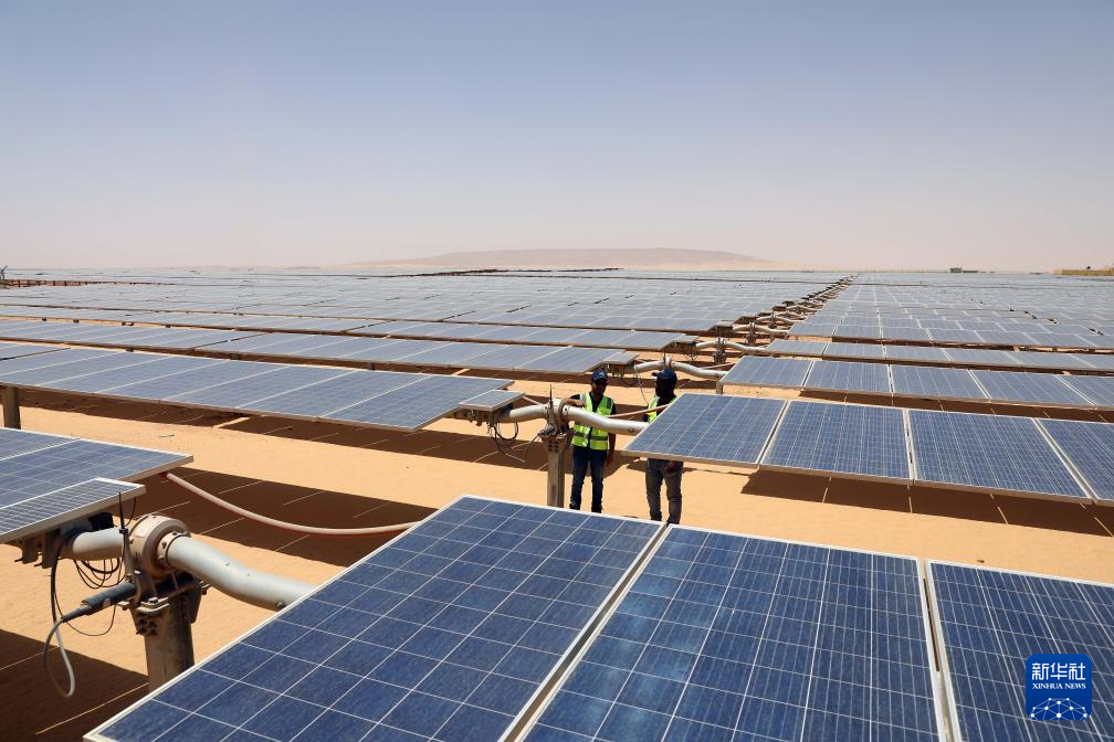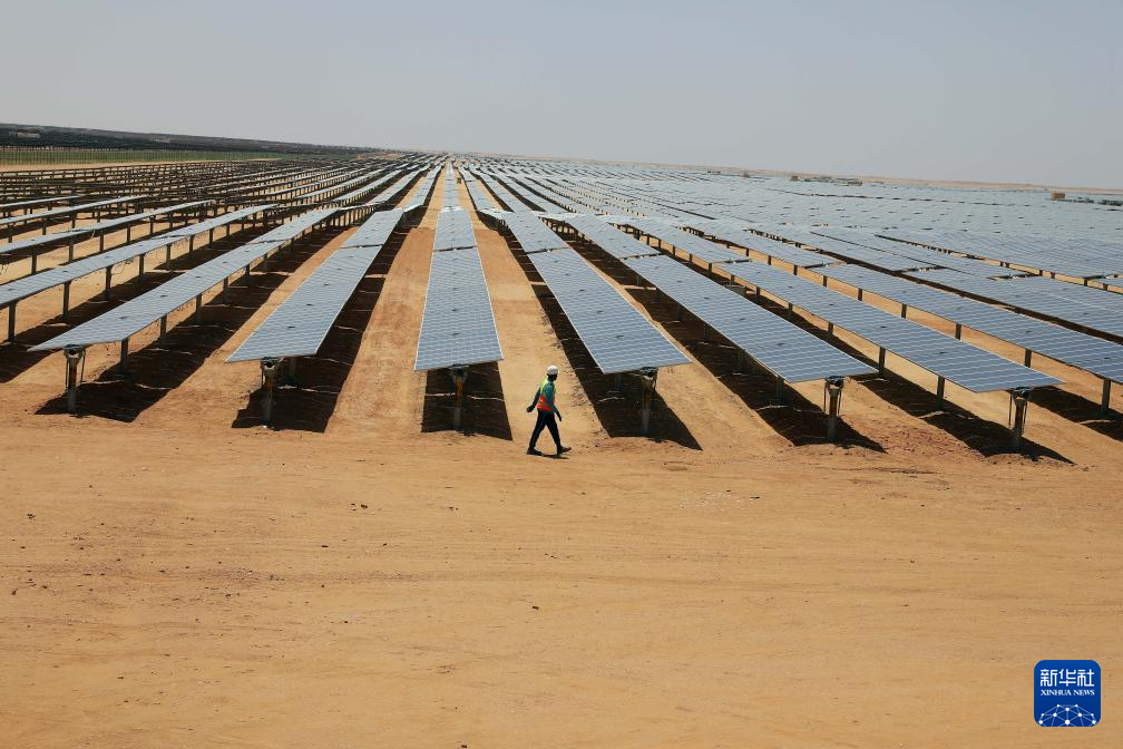 在阿斯旺省沙漠腹地的本班光伏产业园内,一排排光伏面板将充沛的光照资源转化为当地居民生产生活离不开的宝贵电能。本班光伏产业园占地面积37平方公里,规划建设40座太阳能发电厂,总装机容量约2千兆瓦,目前已有32座发电厂建成并投入运营。埃及电力和可再生能源部今年4月发布声明说,本班光伏产业园将帮助埃及增加可再生能源的使用,预计每年可减排200万吨二氧化碳。