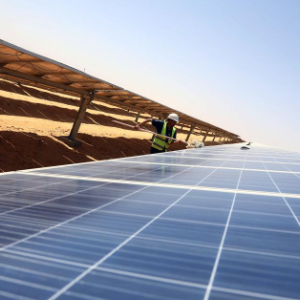 4月21日,在埃及南部阿斯旺省的本班光伏产业园,工人对光伏面板进行巡检。