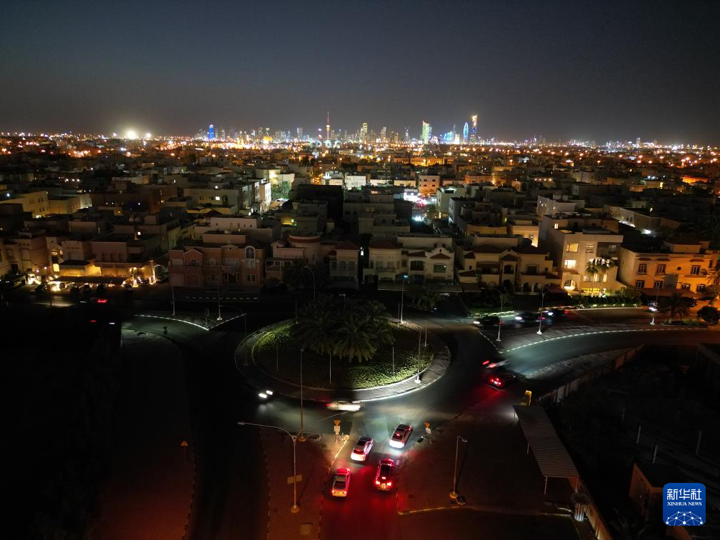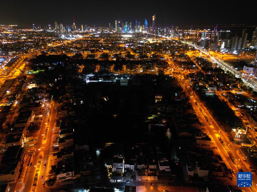 6月19日,科威特首都省部分街区发生停电(无人机照片)。