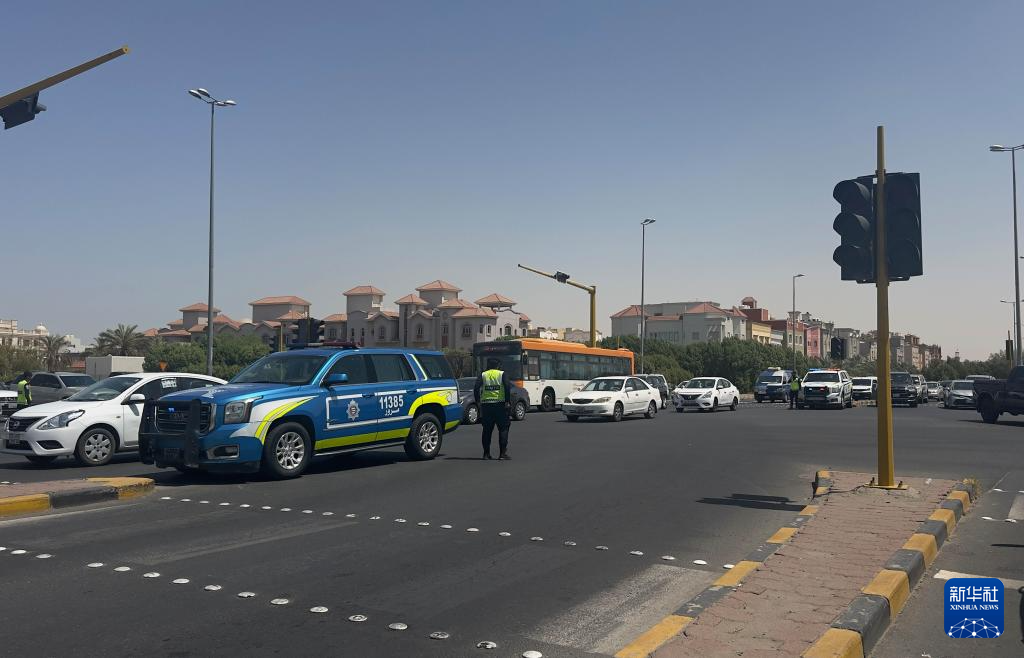 6月19日,在科威特费尔瓦尼耶省,警察在信号灯没电时指挥交通。