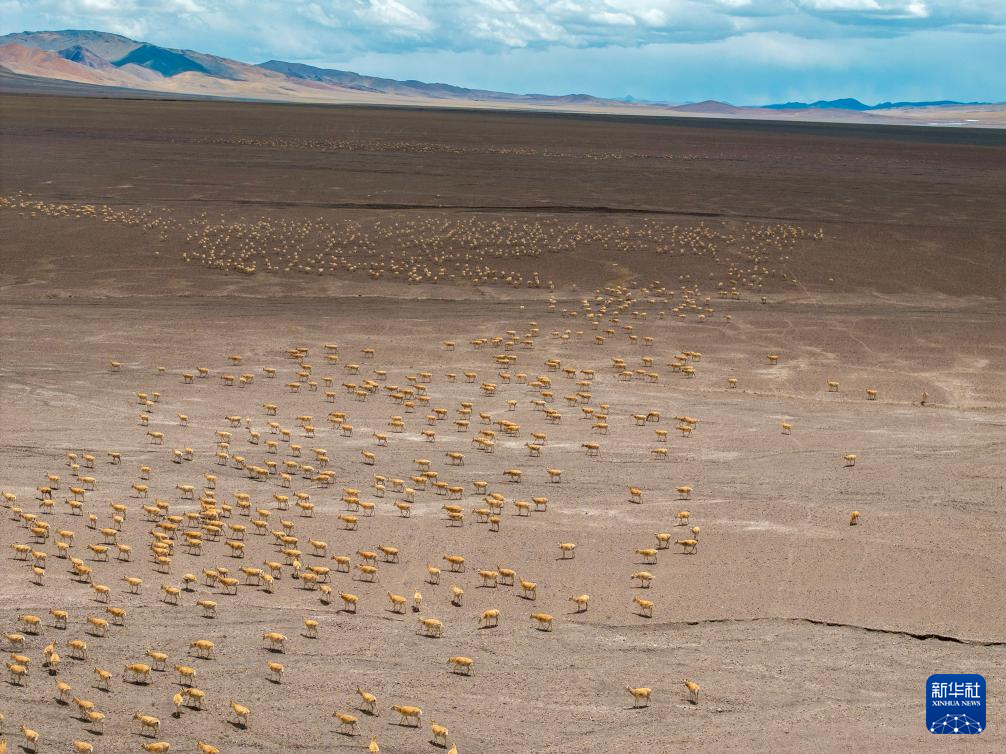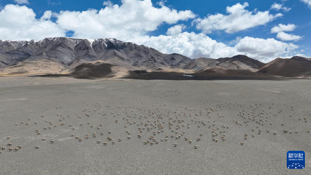 迁徙途中的藏羚羊(6月13日摄,无人机照片)。