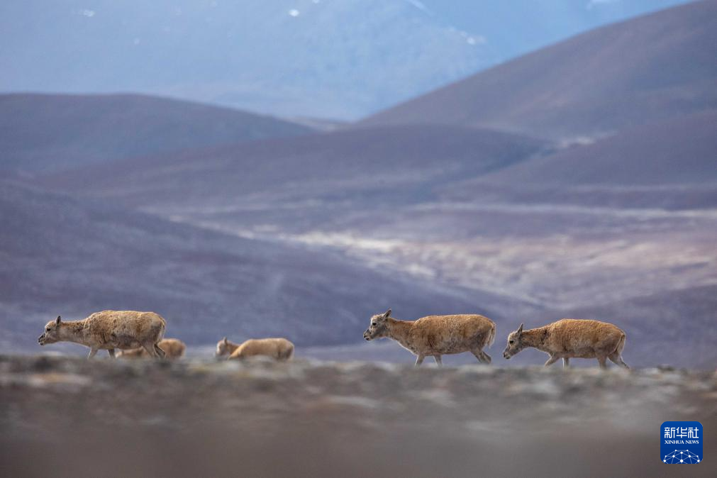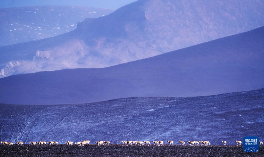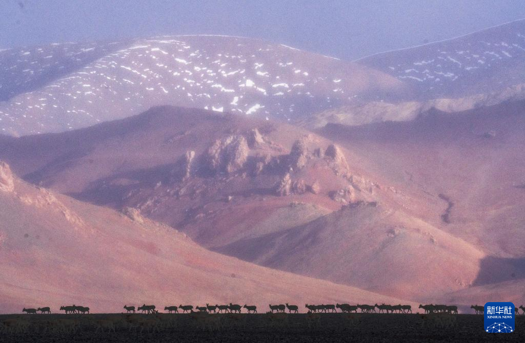 6月15日清晨在羌塘国家级自然保护区拍摄的迁徙中的母藏羚羊。