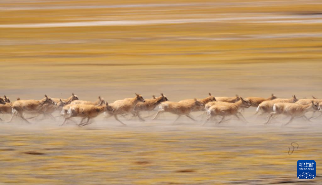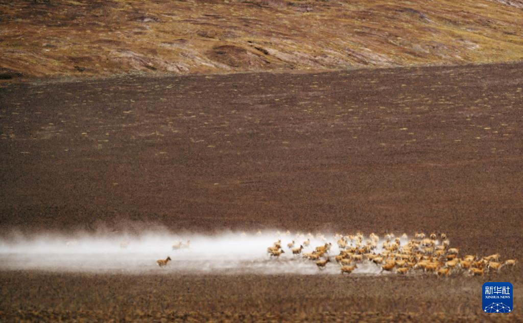 6月13日,在羌塘国家级自然保护区,迁徙中的藏羚羊奔跑起来。