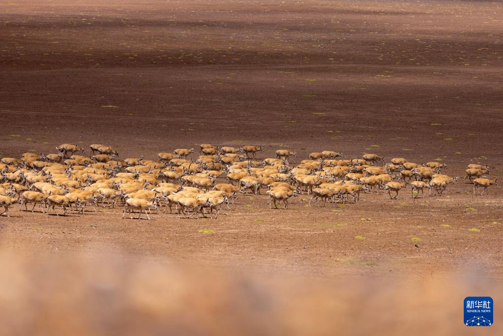 迁徙途中的藏羚羊(6月13日摄)。