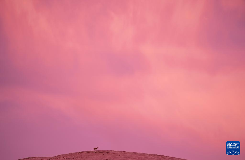 6月15日清晨雪后,在羌塘国家级自然保护区,一只母藏羚羊站在山顶瞭望。