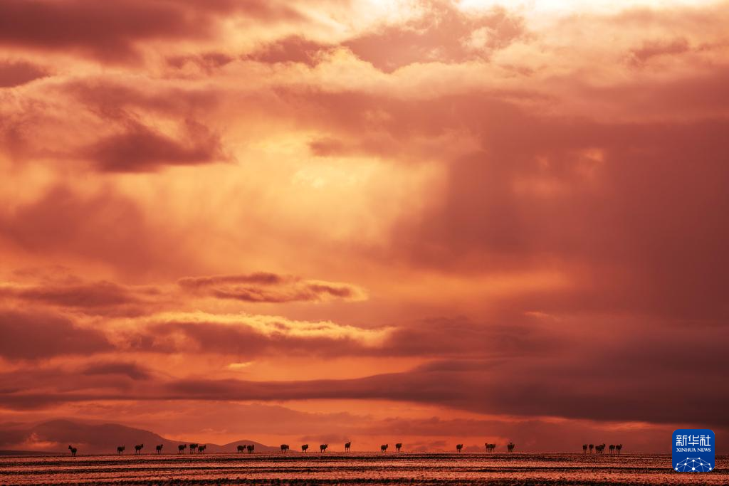 6月13日傍晚在羌塘国家级自然保护区拍摄的迁徙中的藏羚羊。