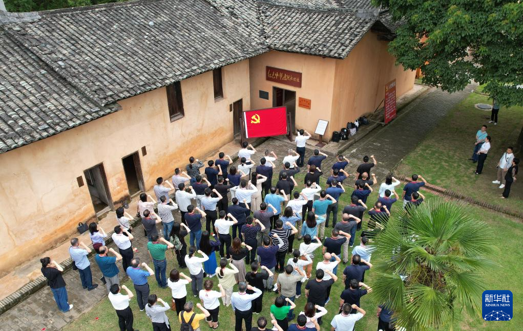 参观者在江西省瑞金市叶坪革命旧址参加活动(2024年5月30日摄,无人机照片)。
