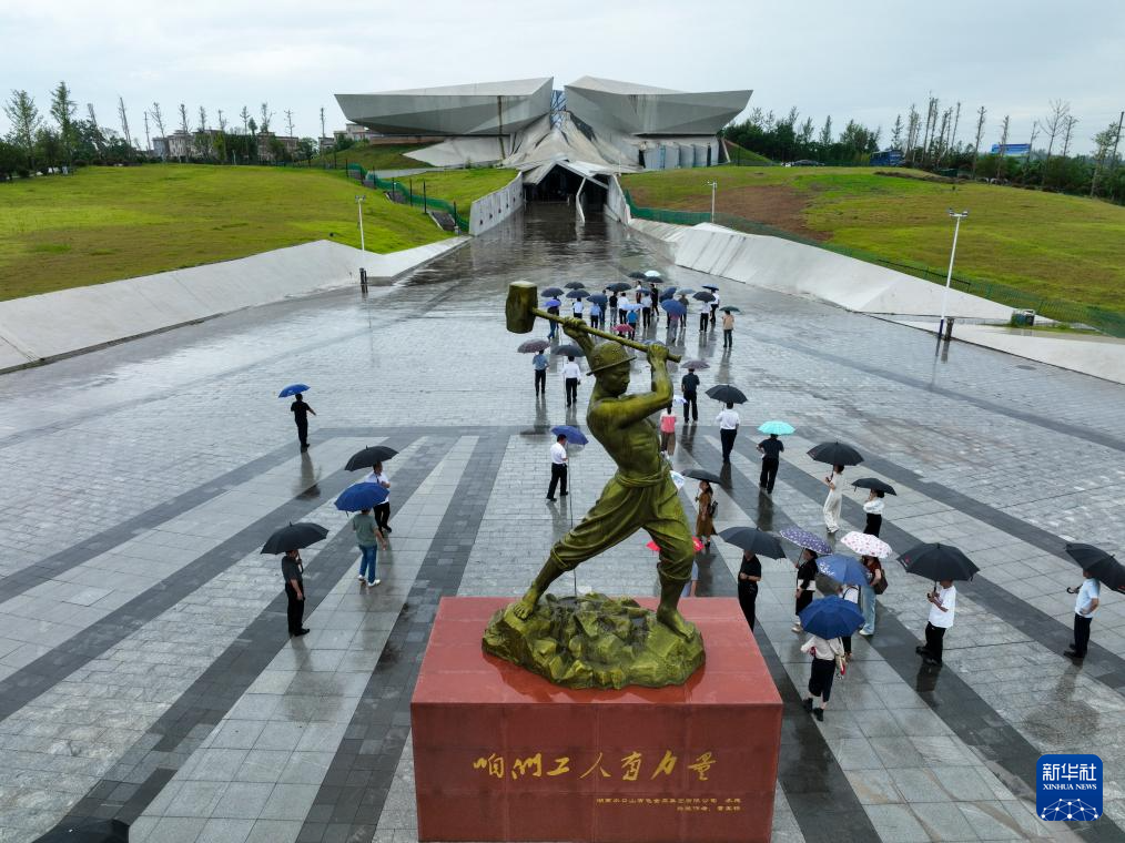 2024年6月18日,游客在湖南省常宁市水口山工人运动纪念馆参观(无人机照片)。