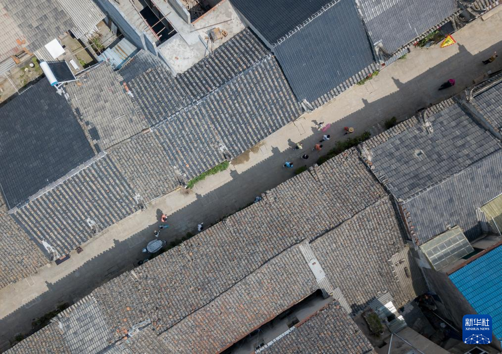 2024年6月6日,游客在湖北黄冈市红安县七里坪镇著名的“红军街”——长胜街游览(无人机照片)。