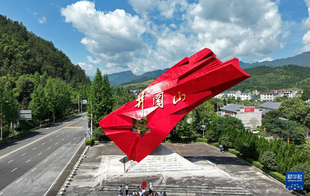 这是位于江西井冈山的“井冈红旗”雕塑(2023年6月28日摄,无人机照片)。