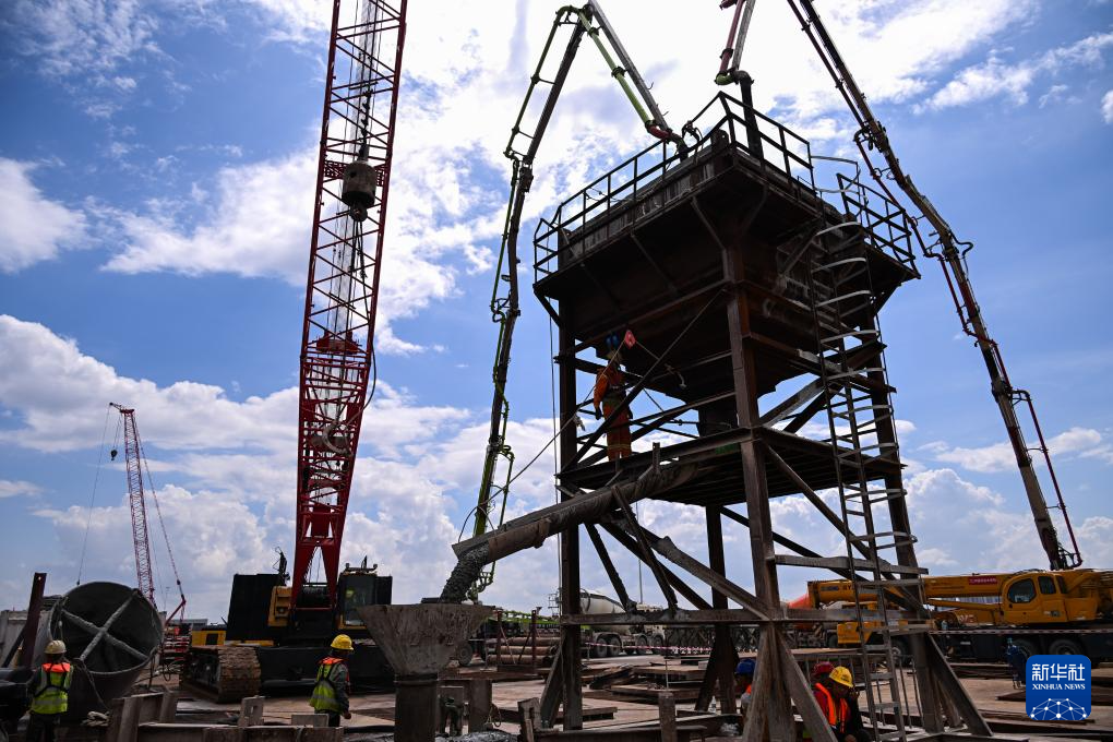 6月21日,中铁建大桥局施工人员进行万龙大桥主墩桩基混凝土浇筑施工。