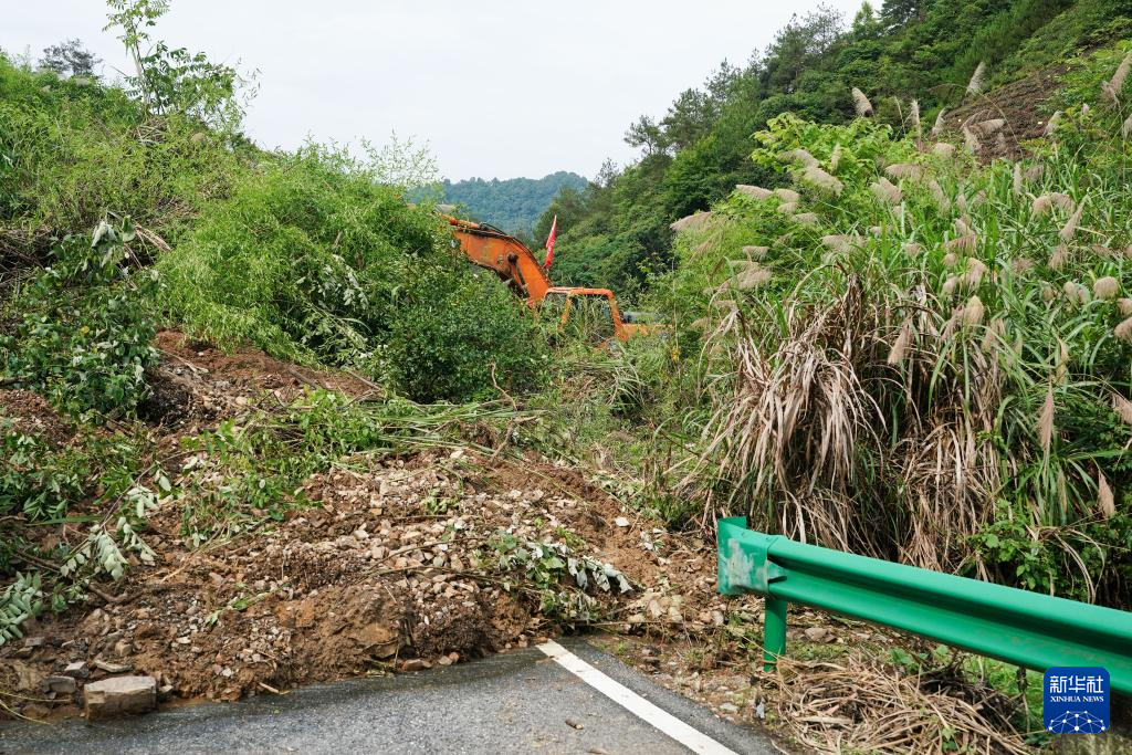 近日,强降雨导致安徽省黄山市歙县桂林镇宋村村境内008县道出现多处塌方。记者在现场看到,多处路段因塌方堵塞,部分道路出现损毁,抢险救援力量正在对塌方路段进行疏通。