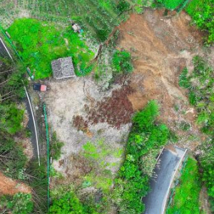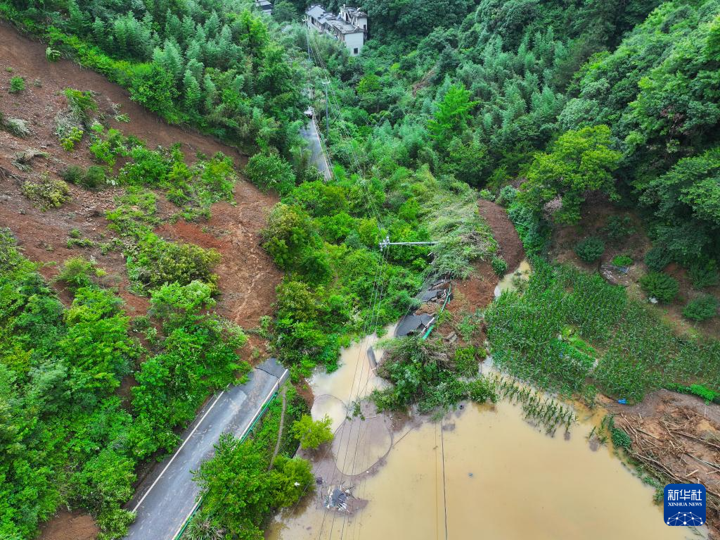 这是6月21日拍摄的歙县桂林镇008县道一处塌方点(无人机照片)。