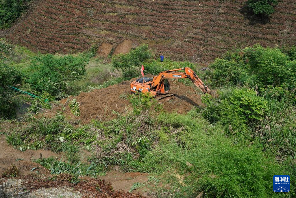 6月21日,在歙县桂林镇008县道一处塌方点,中铁四局四公司抢险救援力量进行道路疏通。