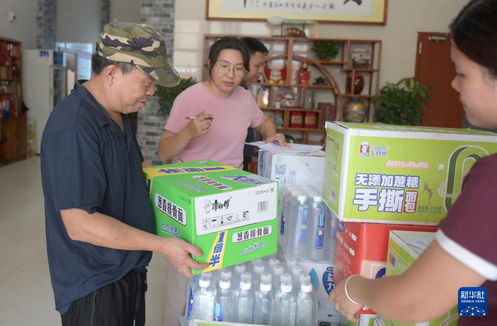 6月21日,在平远县仁居镇安置点,群众在领取生活物品。