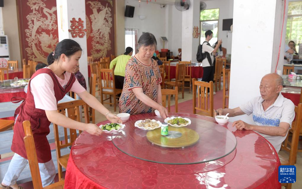 6月21日,在平远县仁居镇安置点,转移群众准备吃饭。