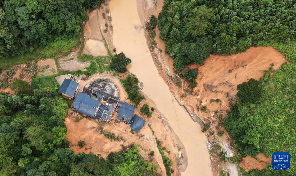 灾后的广东省梅州市平远县泗水镇大新村(6月19日摄,无人机照片)。