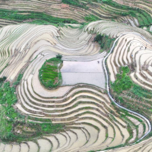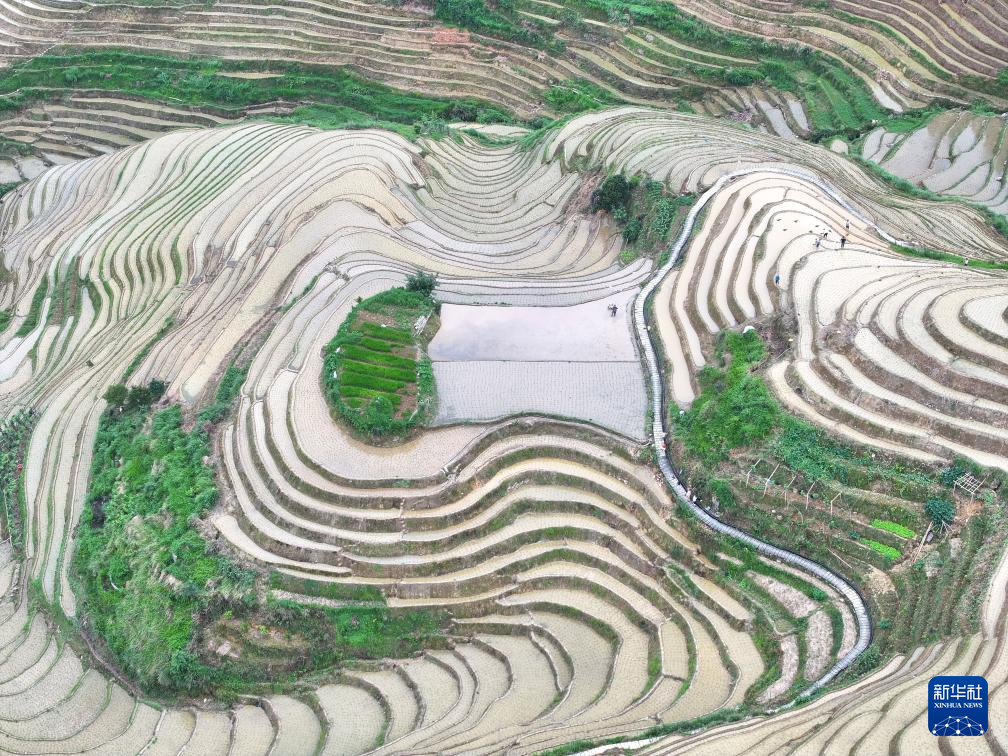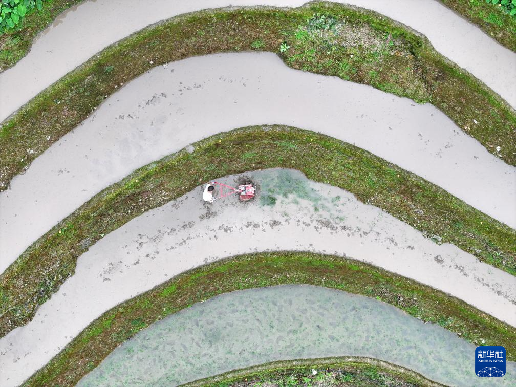 时下正是广西龙胜各族自治县龙脊梯田农忙时节,村民抓紧农时,耕地插秧。