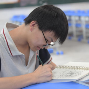 6月22日,泗水中学的学生在课间画画,放松身心。