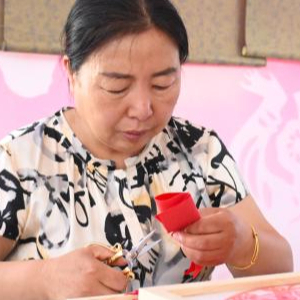 6月22日,参展商在第七届枸杞产业博览会上创作特色剪纸。