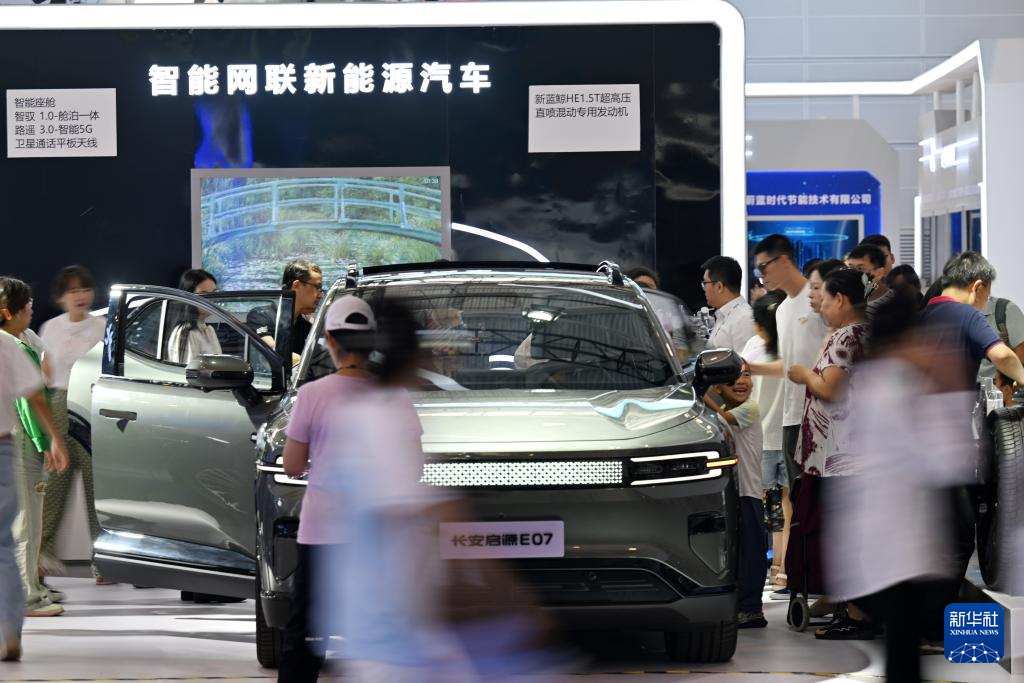 观众在博览会上的长安汽车展台参观(6月22日摄)。