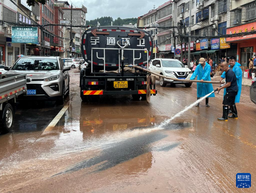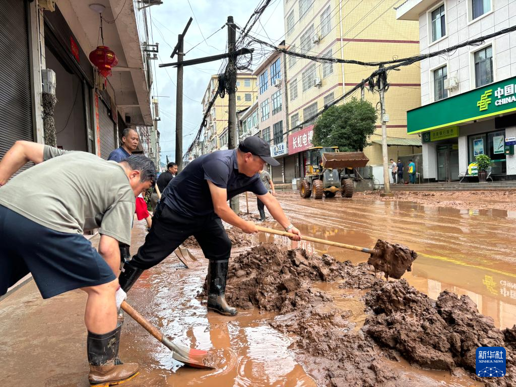 6月23日,沅陵县五强溪镇当地政府组织力量开展道路清淤作业(手机照片)。