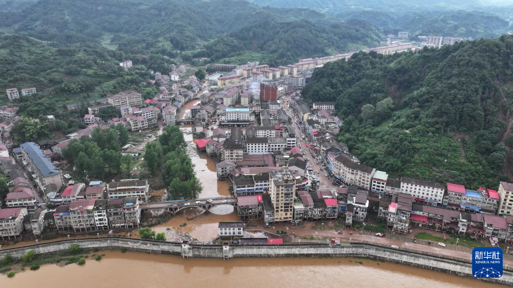 遭遇极端强降雨天气的沅陵县五强溪镇(6月23日摄,无人机照片)。