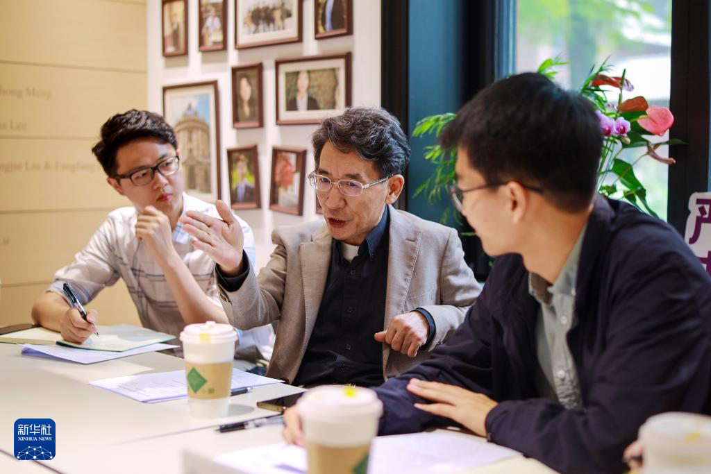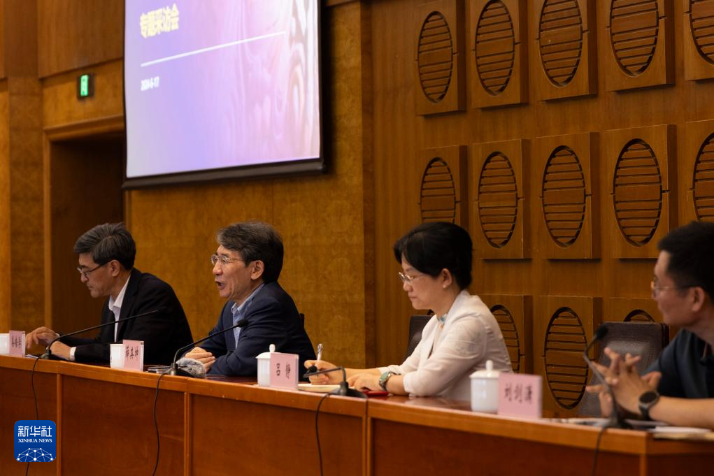 2024年6月17日,薛其坤(左二)在清华大学接受集体采访。