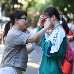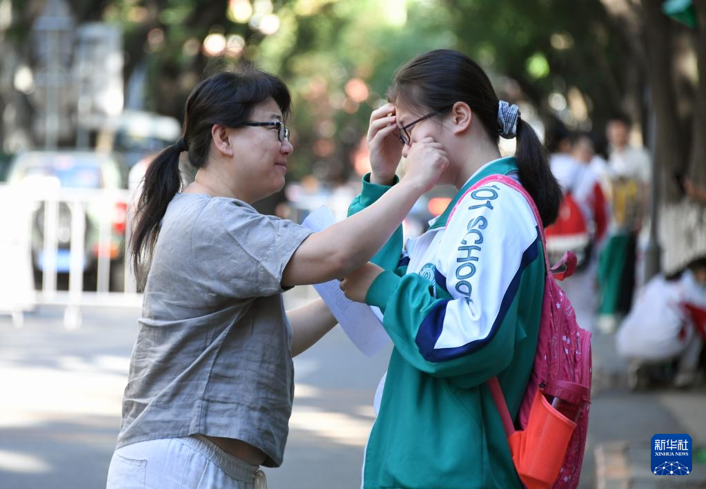 6月24日,在北京一零一中双榆树校区考点,家长鼓励考生。