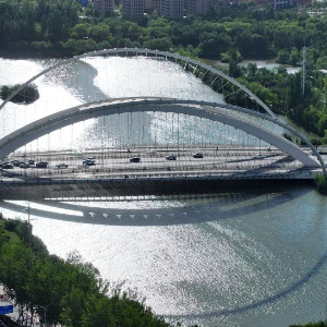 这是6月23日拍摄的位于宁夏银川市典农河上的凤凰桥(无人机照片)。