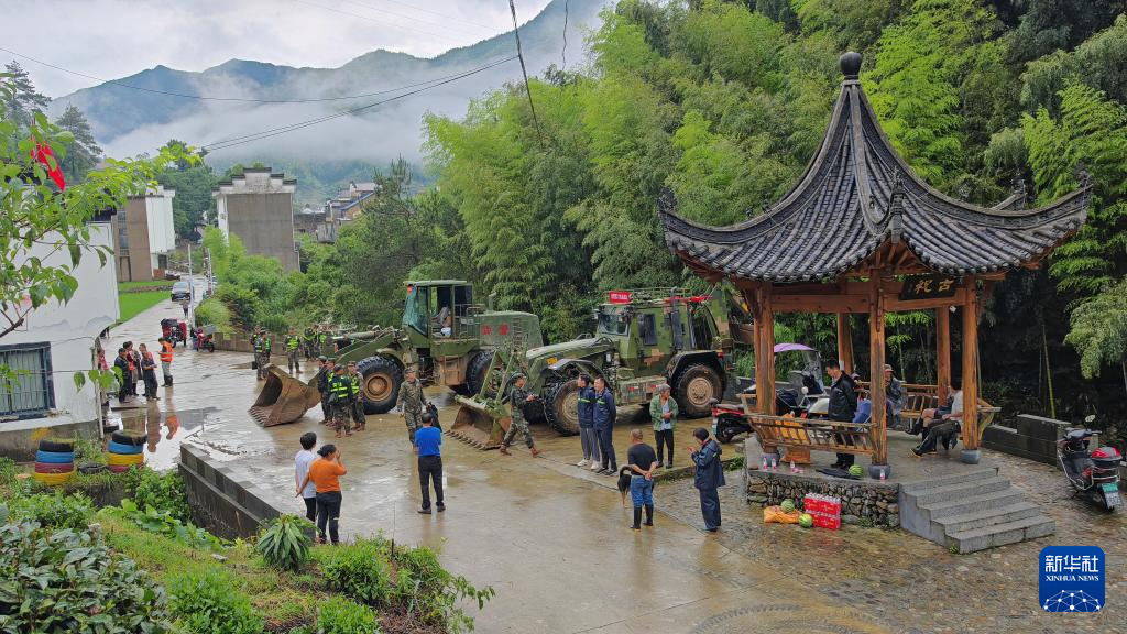 6月19日起,皖南强降雨致安徽省黄山市歙县绍濂乡受灾严重,小溪、清溪、古祝等多个村庄一度断路、断电、断通信。武警第二机动总队某支队官兵紧急出动,运用重型机械和临时桥梁,打通多个道路塌方点,保证群众出行和救援装备的行进通畅。6月23日下午,断路时间最长的一个“孤岛村”——绍濂乡古祝村的道路已抢通。