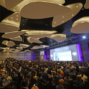 6月25日在夏季达沃斯论坛主会场大连国际会议中心拍摄的开幕式现场。