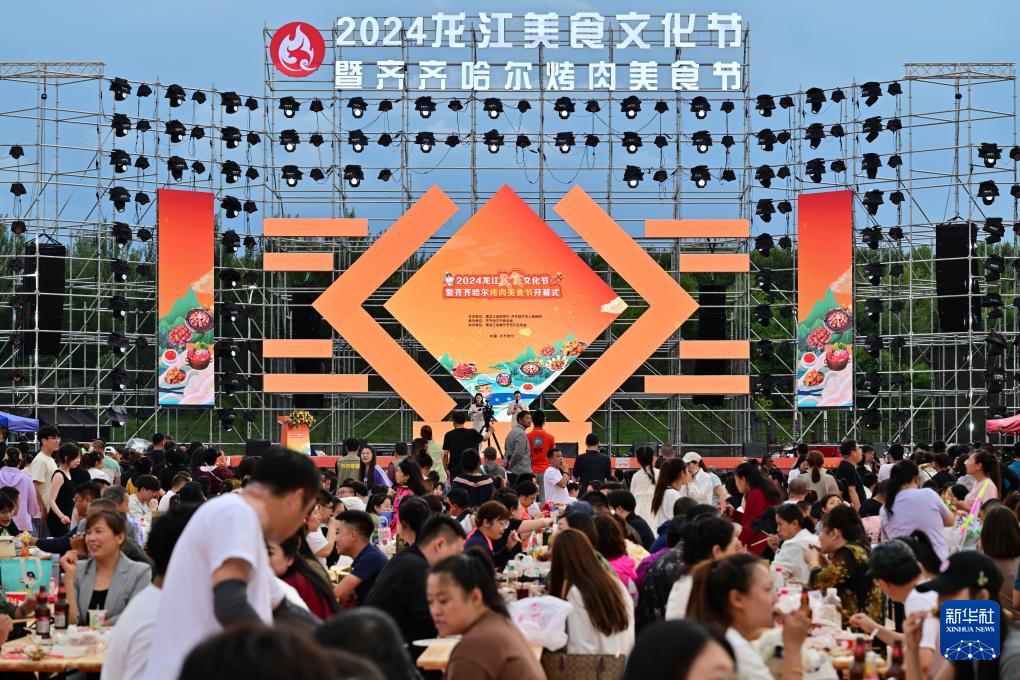 6月24日,2024龙江美食文化节暨齐齐哈尔烤肉美食节在黑龙江省齐齐哈尔市举行,各类烧烤摊位吸引市民和游客前来品尝。