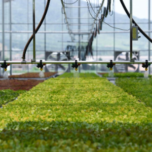 6月24日,在陕西省太白县咀头镇一处蔬菜育苗大棚里,自动喷灌装置在给蔬菜苗浇水。