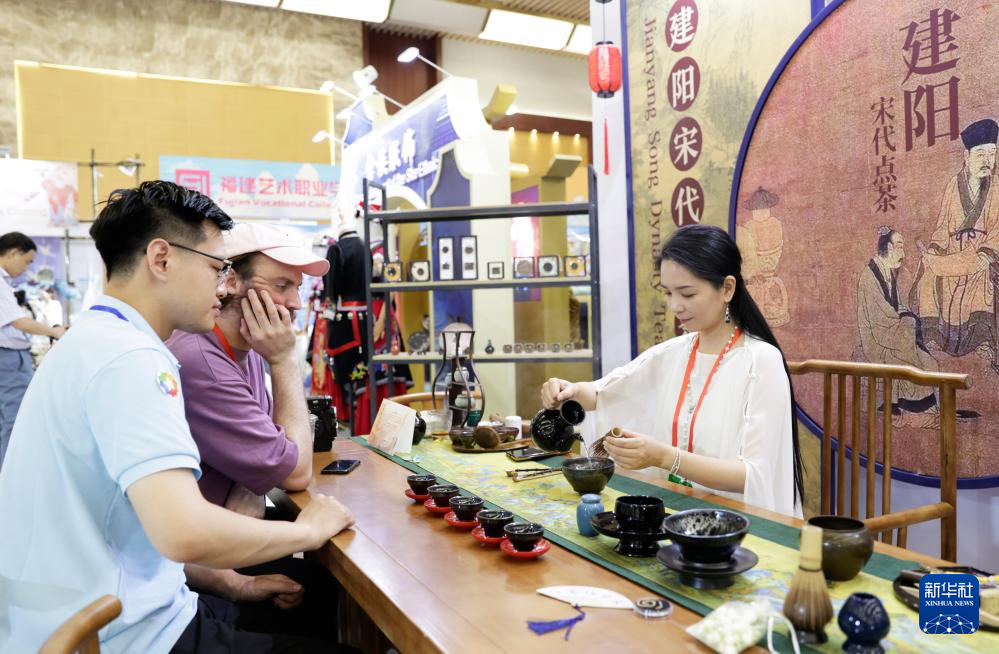 6月26日,嘉宾在非遗展演暨青年集市上体验建阳宋代点茶。
