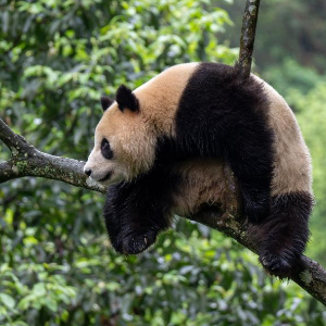 这是4月18日在中国大熊猫保护研究中心雅安碧峰峡基地拍摄的大熊猫“云川”。