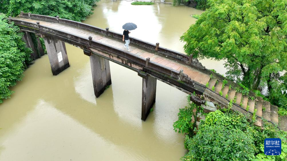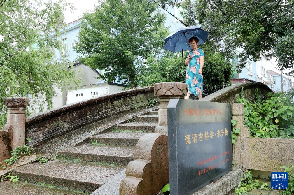 6月25日,村民行走在德清县下渚湖街道下杨村永安桥上。