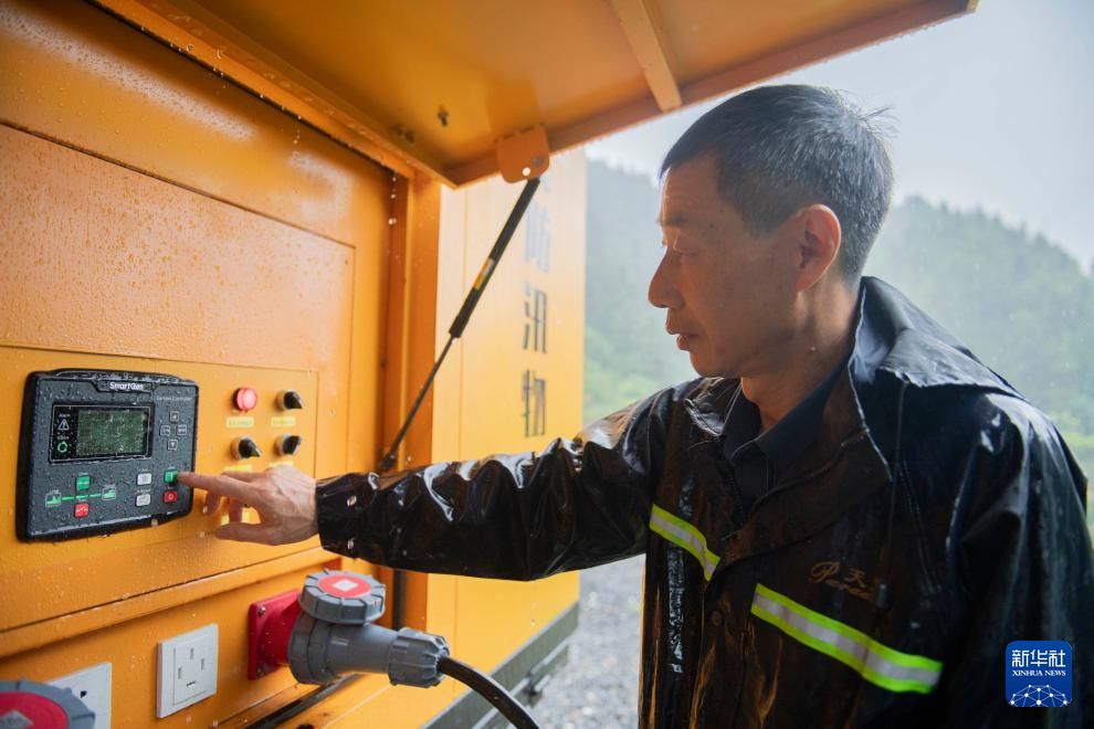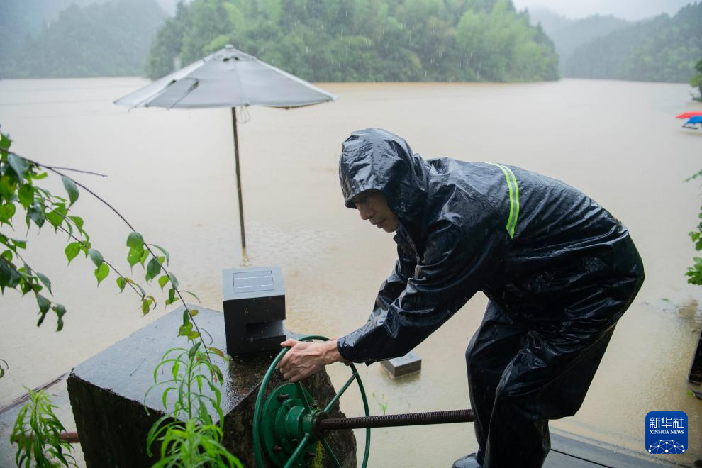 6月26日,在黄山市屯溪区屯光镇草市社区,瑶源水库巡查责任人张金良操作大流量排涝泵站。