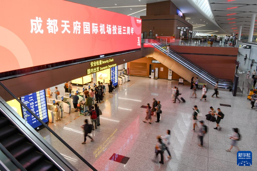 当日,成都天府国际机场迎来投运三周年。截至26日,天府国际机场累计起降航班66.8万架次、旅客吞吐量8838.7万人次,其中国际及地区航班3.5万架次、国际及地区旅客493.3万人次。天府国际机场是成渝地区双城经济圈建设的重要支撑,3年来,航班量、吞吐量等关键生产指标不断攀升;同时,作为成都国际航空枢纽的主枢纽机场,天府国际机场累计开通国际及地区客、货运航线59条,覆盖亚洲、欧洲、北美洲、大洋洲、非洲,国际及地区客流量位居全国第4位、中西部第1位。